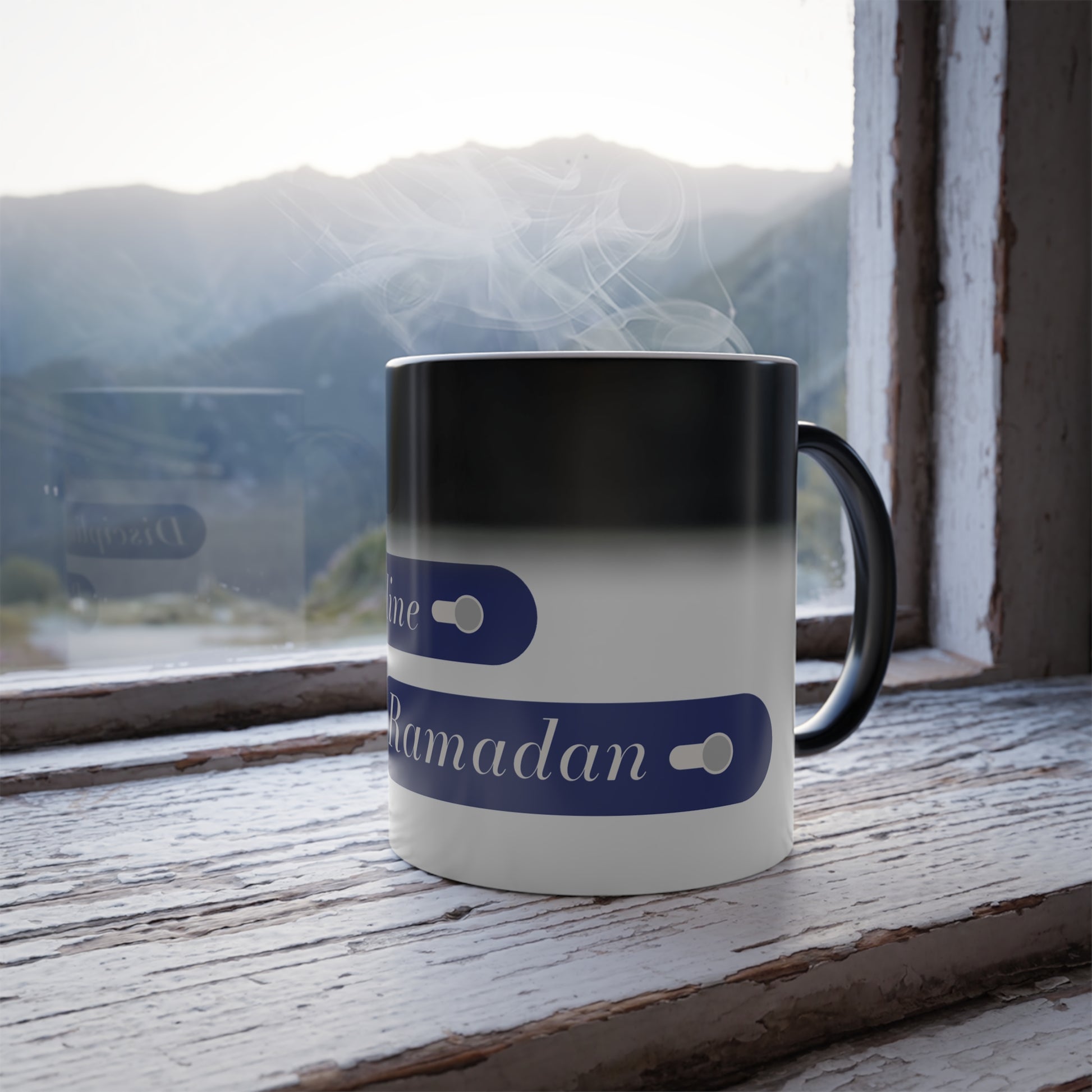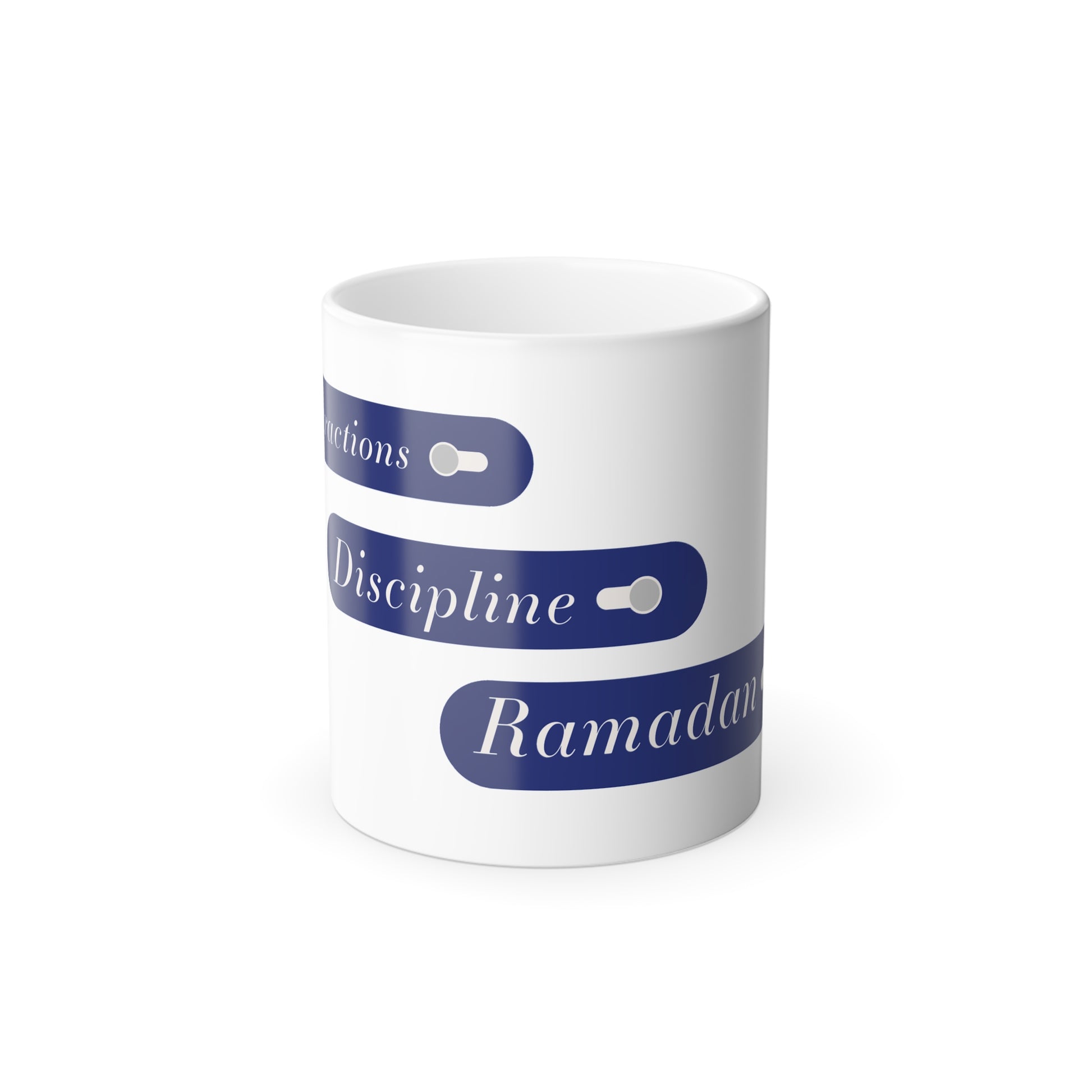 This color-changing mug transforms as your drink warms, revealing a design that reminds you to switch Distraction Off, Discipline On, and Ramadan Mode On. A playful yet meaningful reminder to embrace mindfulness, balance, and growth throughout the holy month.